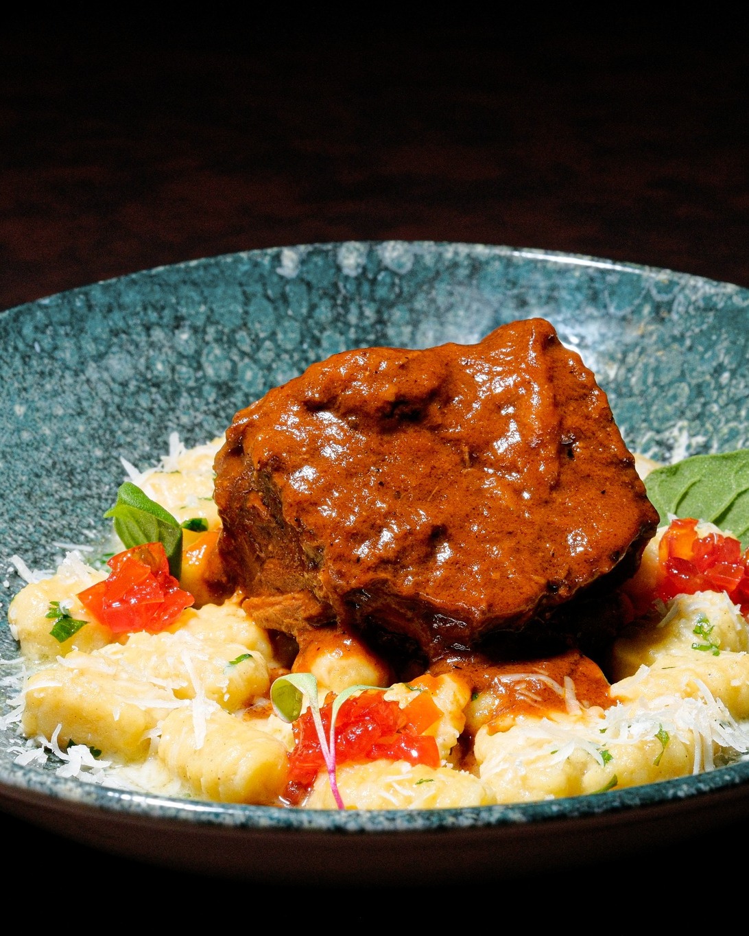 Tiernísimo, cocido por 24 horas en chicha de jora y cerveza, servido con ñoquis suaves.