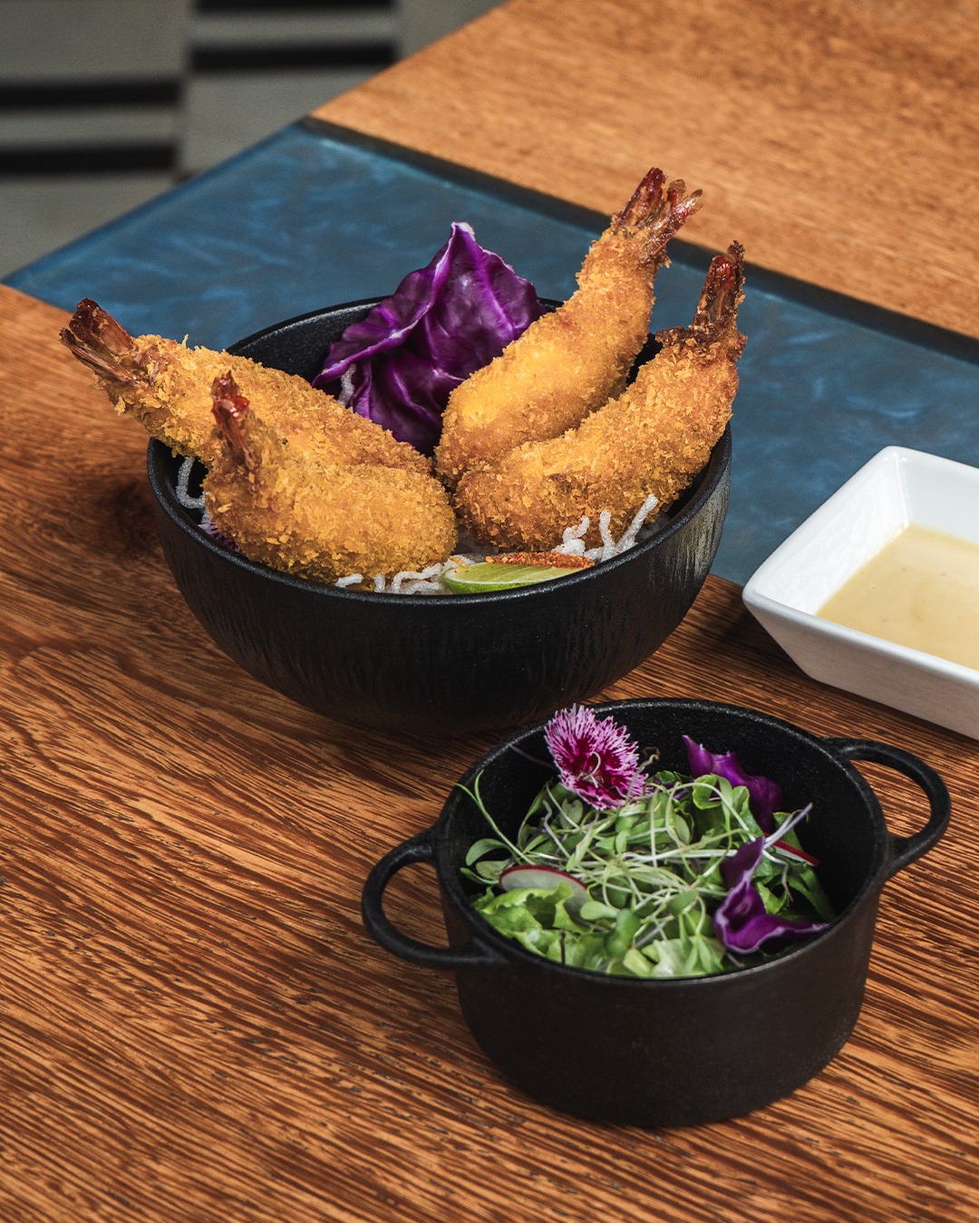 Langostinos rebozados en panko, acompañados de una exótica salsa de maracuyá.