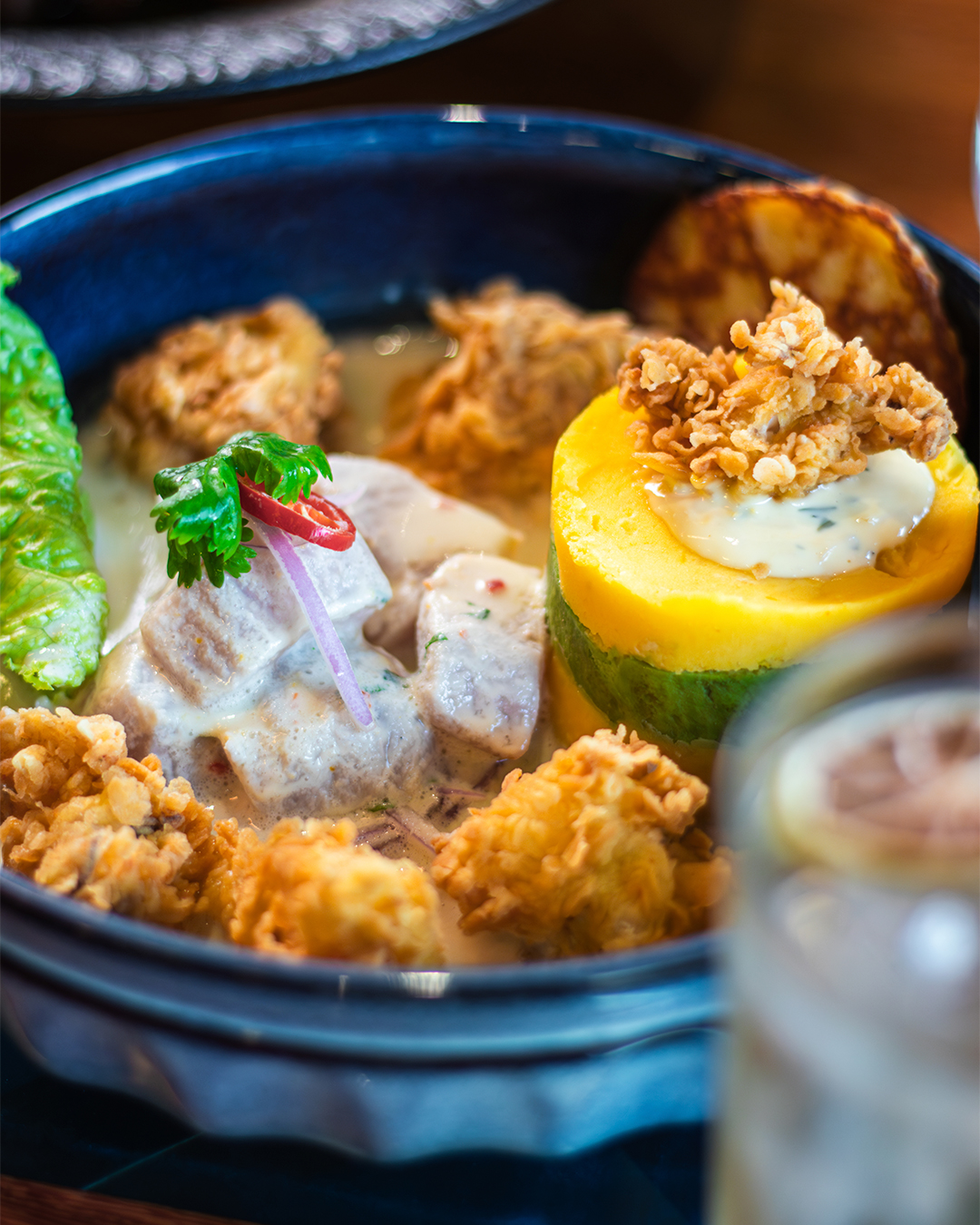 Clásica, pero reinventada. Causa limeña, ceviche clásico y chicharrón de calamar.